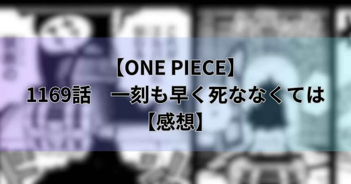今回は、 ONE PIECE1169話「一刻も早く死ななくては」の感想をお届けします。
